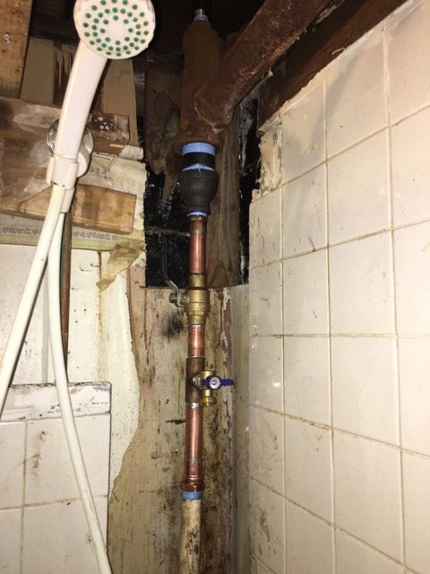 - (2) We carefully opened walls and ceilings to expose piping we needed to access (cleaning up all debris in the process).
